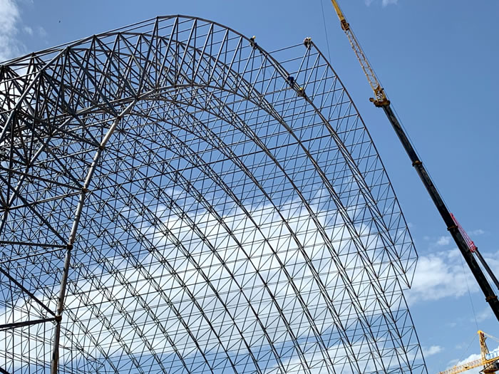(2)网架加工前应对现场尺寸进行复测,确认无误后方可进行加工、安装;网架制作、运输、安装应遵守《空间网格结构技术规程》JGJ7-2010、《钢网架恩施螺栓球节点》JG/T 10-2009、《钢网架恩施螺栓球节点用高强度螺栓》 GB/T 16939-2016、《恩施钢结构恩施工程施工规范》 GB50755-2012、《恩施钢结构恩施工程施工质量验收标准》 GB50205-2020。